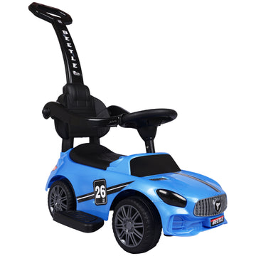 KURB Push Ride-On Car is a fun baby car made from virgin PVC, offering ultimate safety, comfort, and fun with features like smooth steering, musical horn, lights, and utility storage—perfect for indoor and outdoor play. Designed for motor skill development and parental convenience with a push handle and sturdy wheels for all terrains.